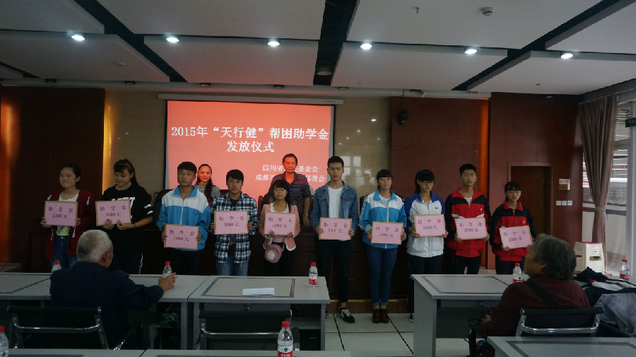 关注学子就是关注未来,播撒爱心就是播撒希望。2015年9月9日,四川省民生慈善基金会及成都市龙泉驿区慈善会共同在龙泉驿区举行了“天行健”帮困助学金发放仪式,四川省民生慈善基金会副理事长兼秘书长杨秀华,成都市龙泉驿区慈善会副会长陈明玉及40名受助贫困学生代表参加了捐赠仪式,四川省民生慈善基金会向龙泉驿区47名贫困学子发放了助学金,其中40名贫困高中生、7名贫困本科大学生,分别一次性发放2000元和5000元助学金,以帮助他们顺利完成高中学业和大学圆梦。