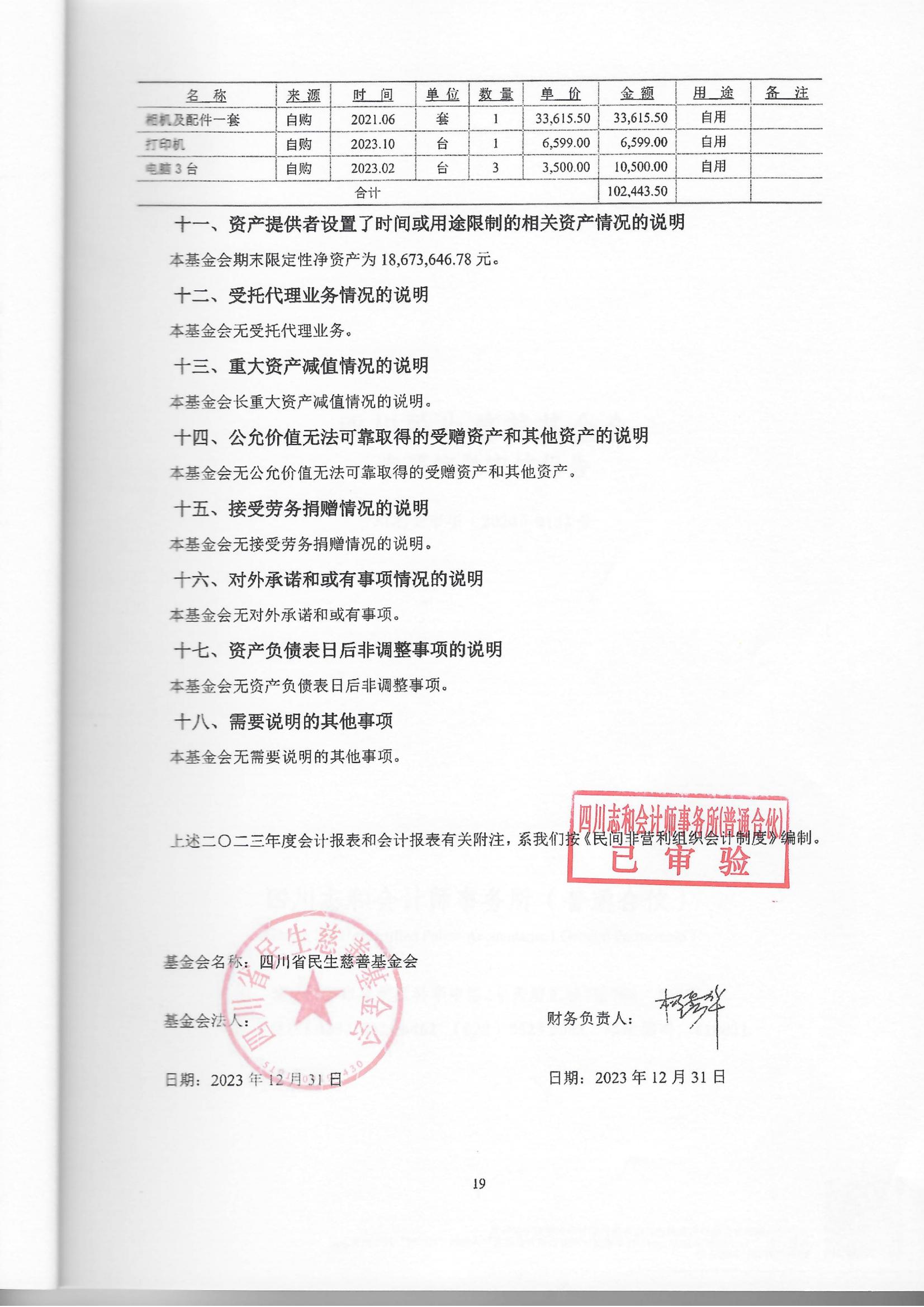 四川省民生慈善基金会2023年度财务审计报告 - 四川省民生慈善基金会