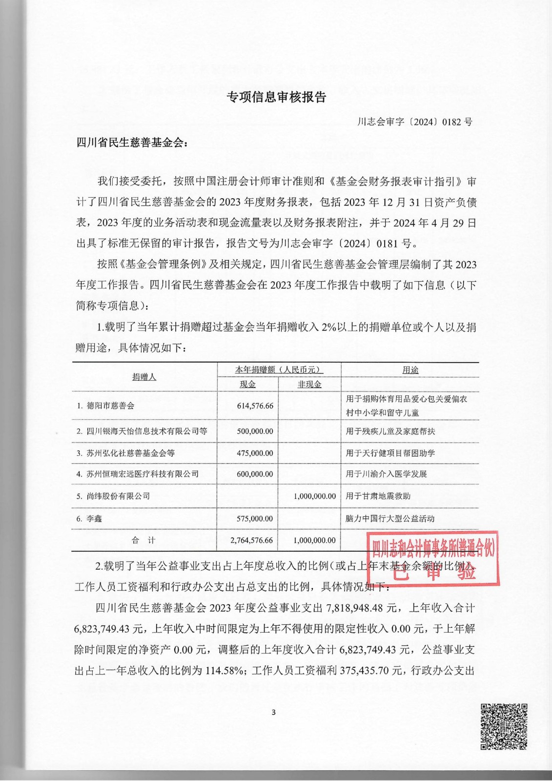 四川省民生慈善基金会2023年度专项信息审核报告
