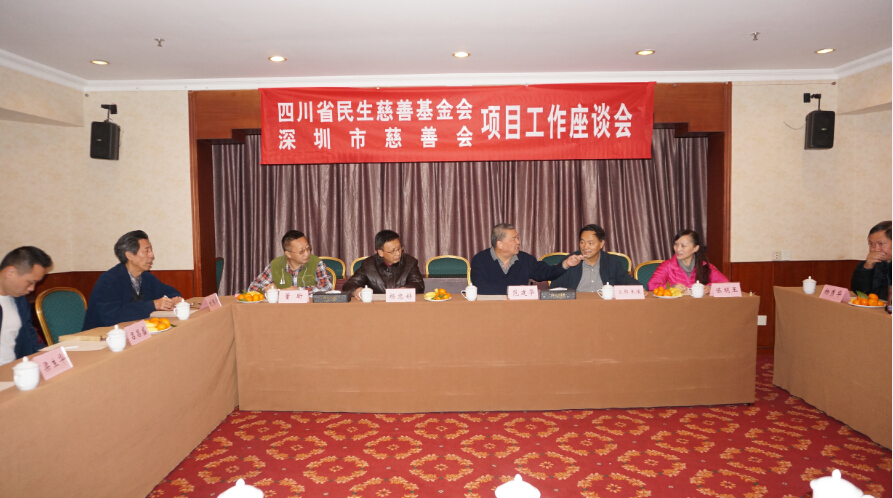 2014年12月6日,四川省民生慈善基金会与深圳慈善会项目工作座谈会在成都召开。四川省民生慈善基金会理事长三郎木滚、常务副理事长杨忠好、副理事长杨秀华、刘晓伟、副理事长兼秘书长刘国华,深圳慈善会副会长范建华、事业发展部部长董昕、项目官员吕昌盛,成都龙泉驿区慈善会常务副会长陈明玉、洪安镇党委书记黄晓靖等相关人员出席了会议。
