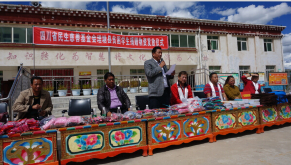 2014年9月12日,四川省民生慈善基金会在海拔4100米的世界第一高城理塘县村戈小学举行了理塘县贫困学生捐赠物资发放仪式,四川省民生慈善基金会将广东深圳黎伯智爱心团队组织的价值100万元的御寒棉衣,围巾、帽子、手套、鞋子、雨衣、书包、文具、作业本等爱心物资捐赠给理塘的村戈、禾尼、藏坝等13个乡2个村的1500多名藏族贫困小学生。四川省民生慈善基金会副理事长刘晓伟、理塘县委常委、统战部长肖扎西、县民政局局长阿格、副局长沈郎吉、县教育局副局长刘晓红及广东深圳黎伯智爱心团队的志愿者出席了捐赠仪式。肖扎西代表理塘县委、县政府对省民生慈善基金会和爱心人士的善举高度赞赏,向省民生慈善基金会及社会各界对藏区贫困学生的关爱和帮助表示感谢,表示一定严格按照捐赠方要求,及时将捐赠物资送到贫困学生手中。刘晓伟介绍了省民生慈善基金会的宗旨是发扬人道主义精神,弘扬中华民族赈灾济民,扶贫济困的传统美德,开展安老、扶幼、助残、助学、助医、济困、赈灾等慈善救助工作。他希望更多的爱心企业、爱心组织和爱心人士伸出援手,积极参与公益慈善活动,将爱心传递。仪式结束后,省民生慈善基金会工作人员及志愿者一行驱车几十公里,到边远牧区的禾尼、骡子沟、奔戈、甲洼、雄坝、藏坝6个小学进行了捐赠物资现场发放,同学们表示一定要好好学习,不辜负社会各界对他们的关爱和帮助,长大了回报社会。