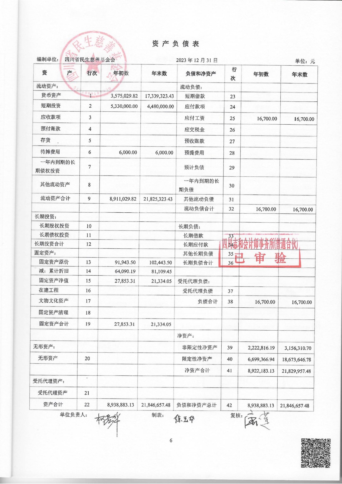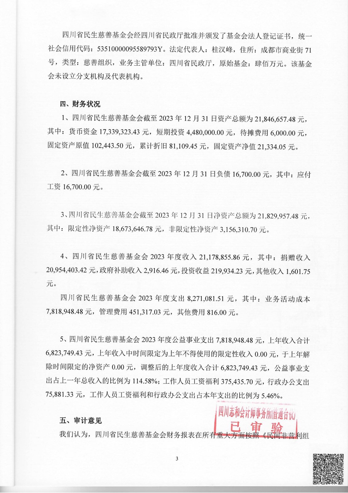 四川省民生慈善基金会2023年度财务审计报告 - 四川省民生慈善基金会