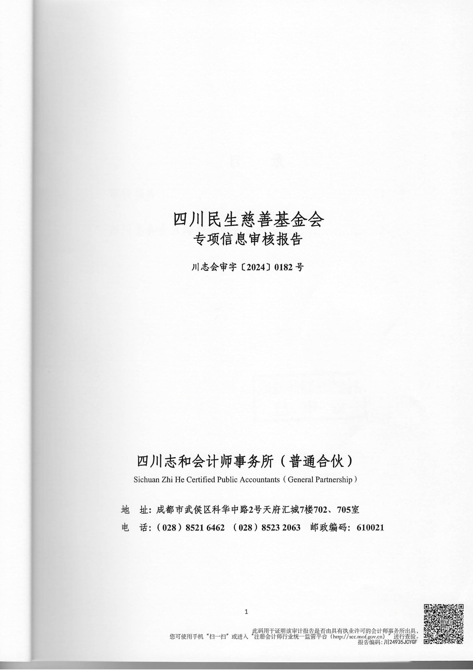 四川省民生慈善基金会2023年度专项信息审核报告 - 四川省民生慈善基金会